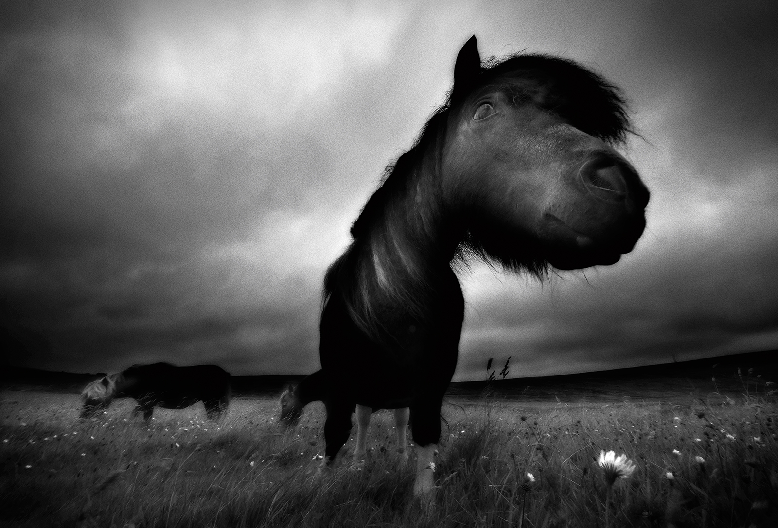 Shetlandsponny, Shetland. ”De är ju inga vilda djur, men jag ville fånga Shetlands själ och då är hästarna givna. Jag är helt nära, ligger på backen.”