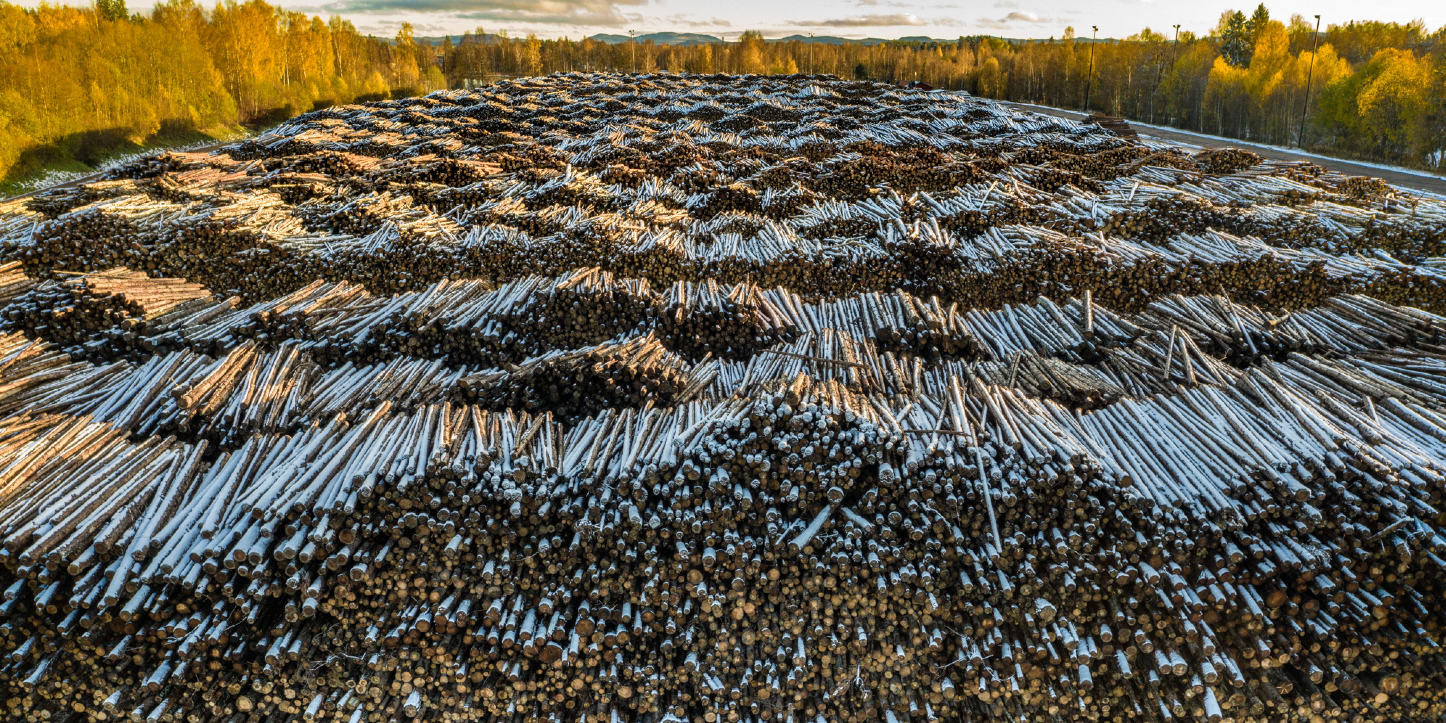 Timmerstockar flyttas runt i en virkesterminal utanför Sundsvall. Bilden finns med i en ny bok om människans intrång i naturen, ”The Evidence Project”, där foton av några av världens bästa fotografer ska mana till handling för klimatet.
