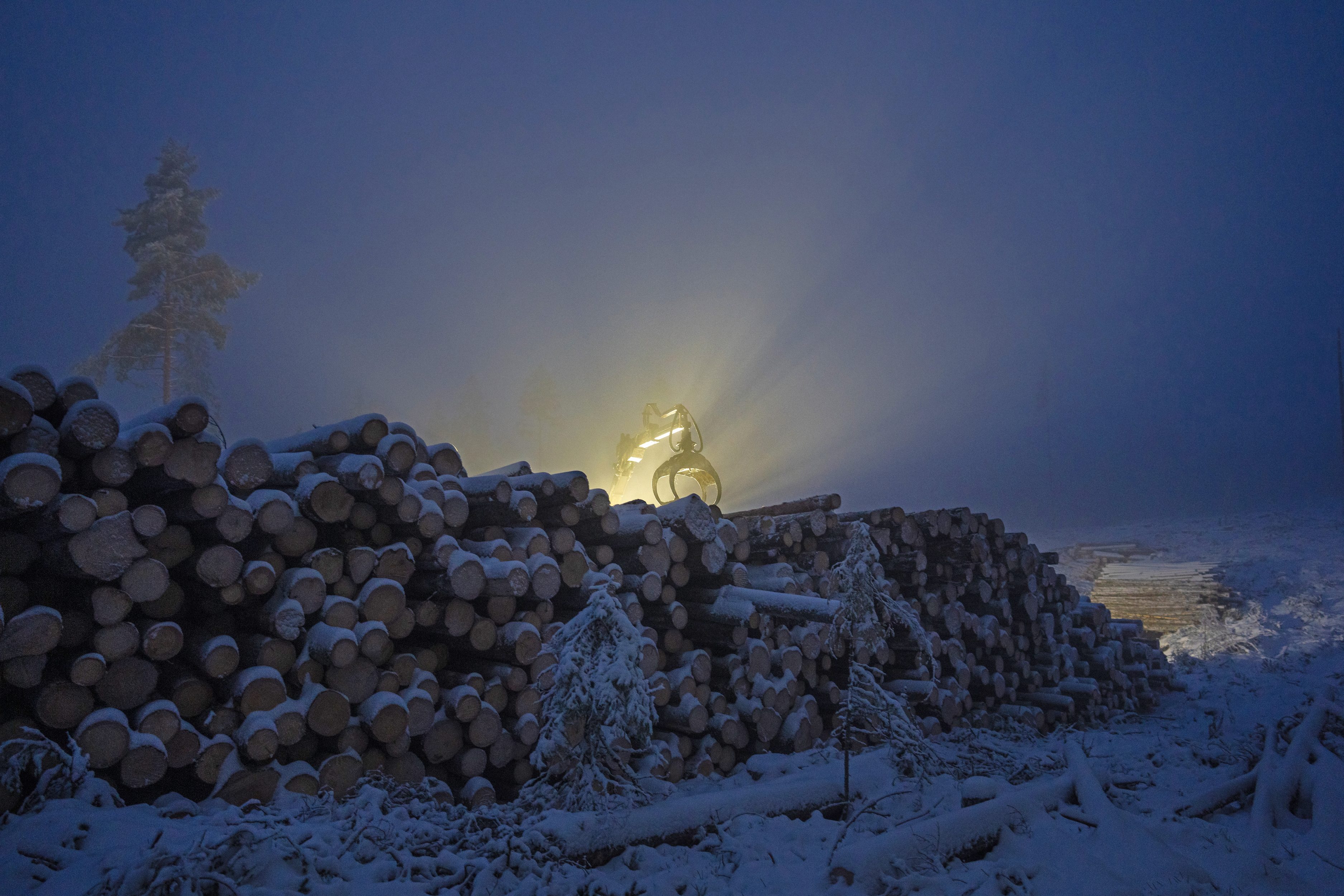 Det svenska storskogsbruket vilar sällan: redan före klockan 6 på morgonen, mitt i vintern, är maskinerna igång utanför Lennarts gård i Jämtland.