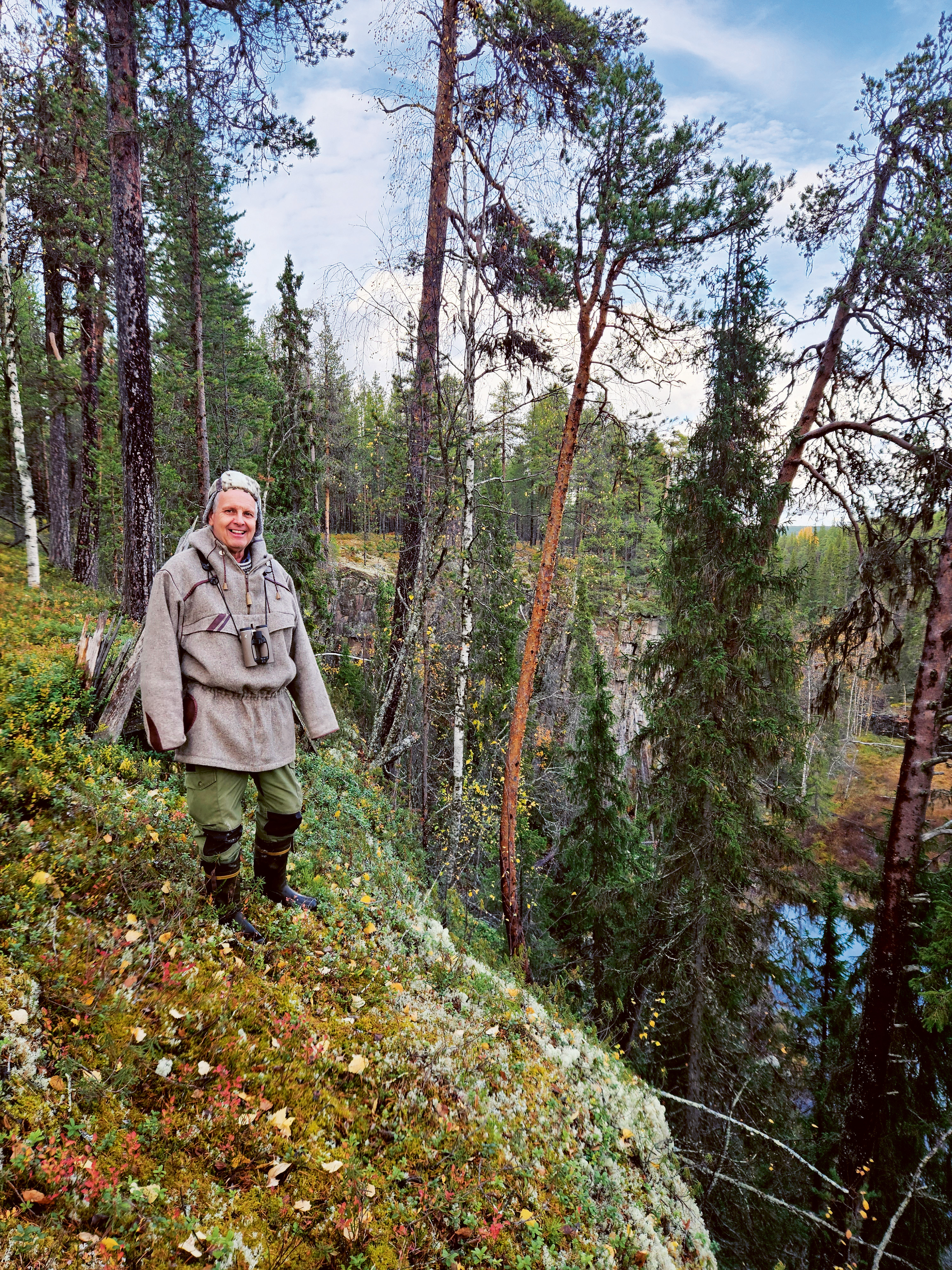Vi står mitt i ett av de nya reservaten, Helvetesfallet sydost om Jokkmokk. Här har Görjeån ätit sig ned genom sedimenten och bildat en dramatisk ravin med brusande vattenfall och klippsidor kantade av urgamla granar och tallar.