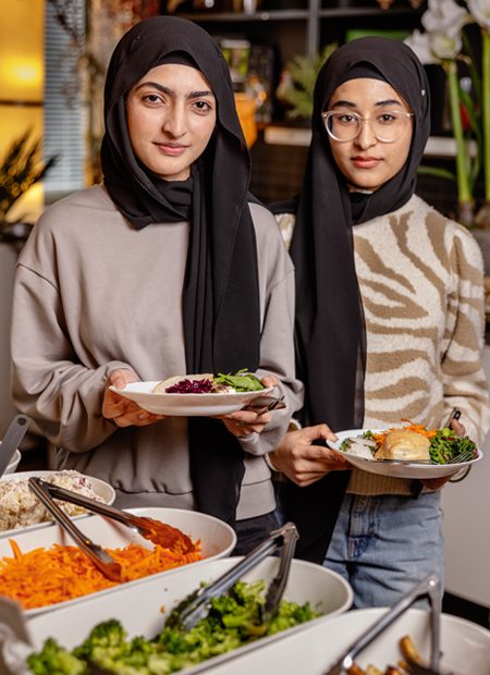 Eleverna Mah Noor och Eman Malik tycker att skolan kan göra mer för att minska matsvinnet.