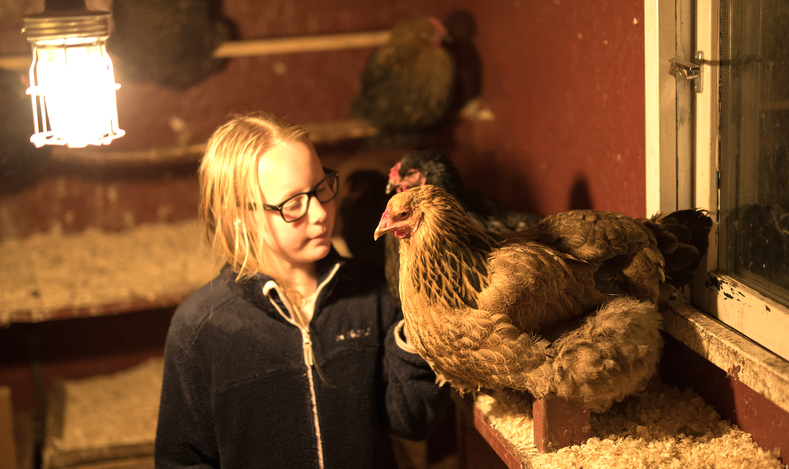 Daglig tillsyn. Selma hjälper till att sköta hönshuset och samla in ägg – fast helst vill hönorna lägga äggen ute i skogsbrynet. FOTO: Kristoffer Sahlén