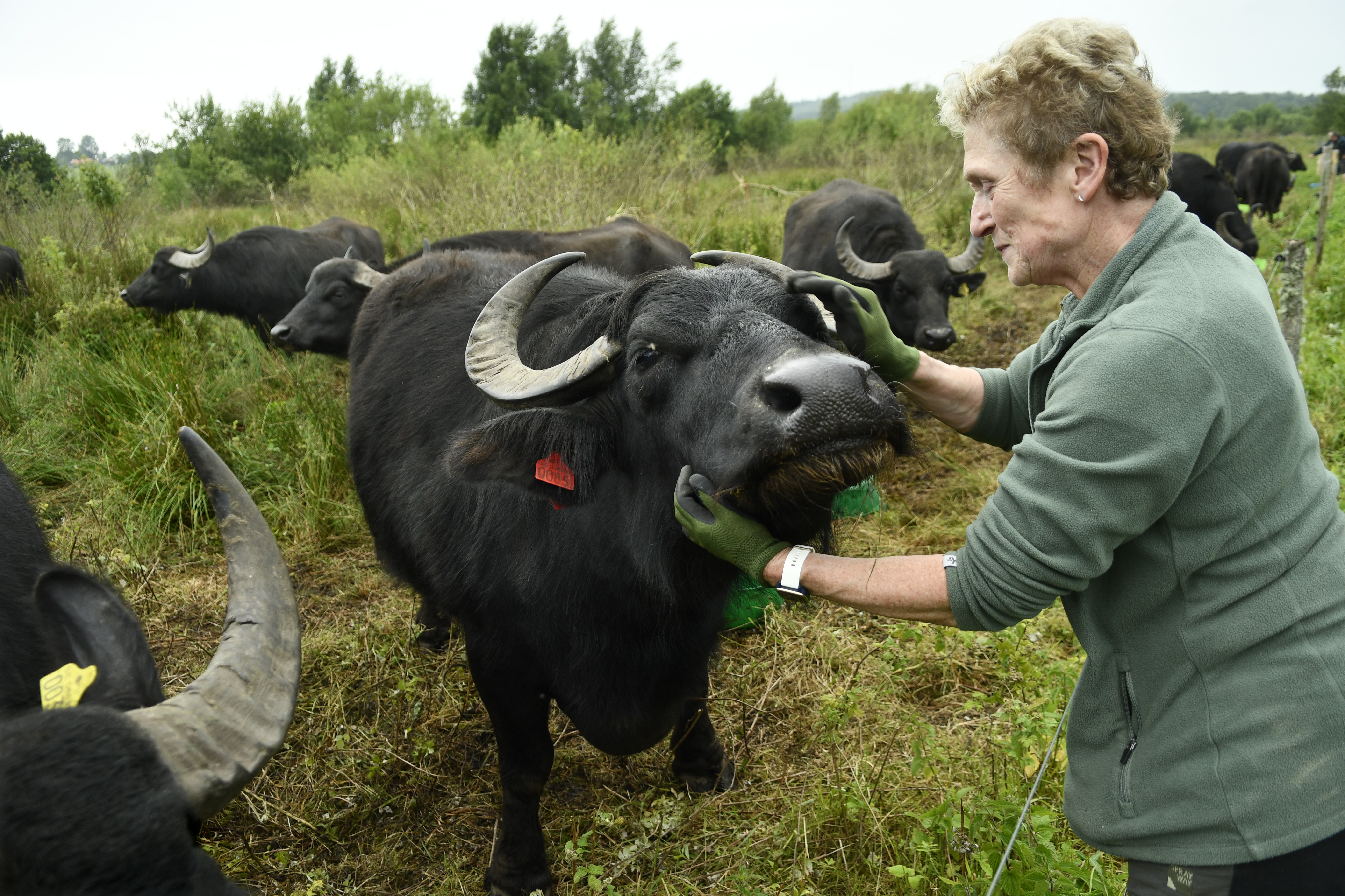 Sabine Ritter ger sina vattenbufflar omsorg och massage