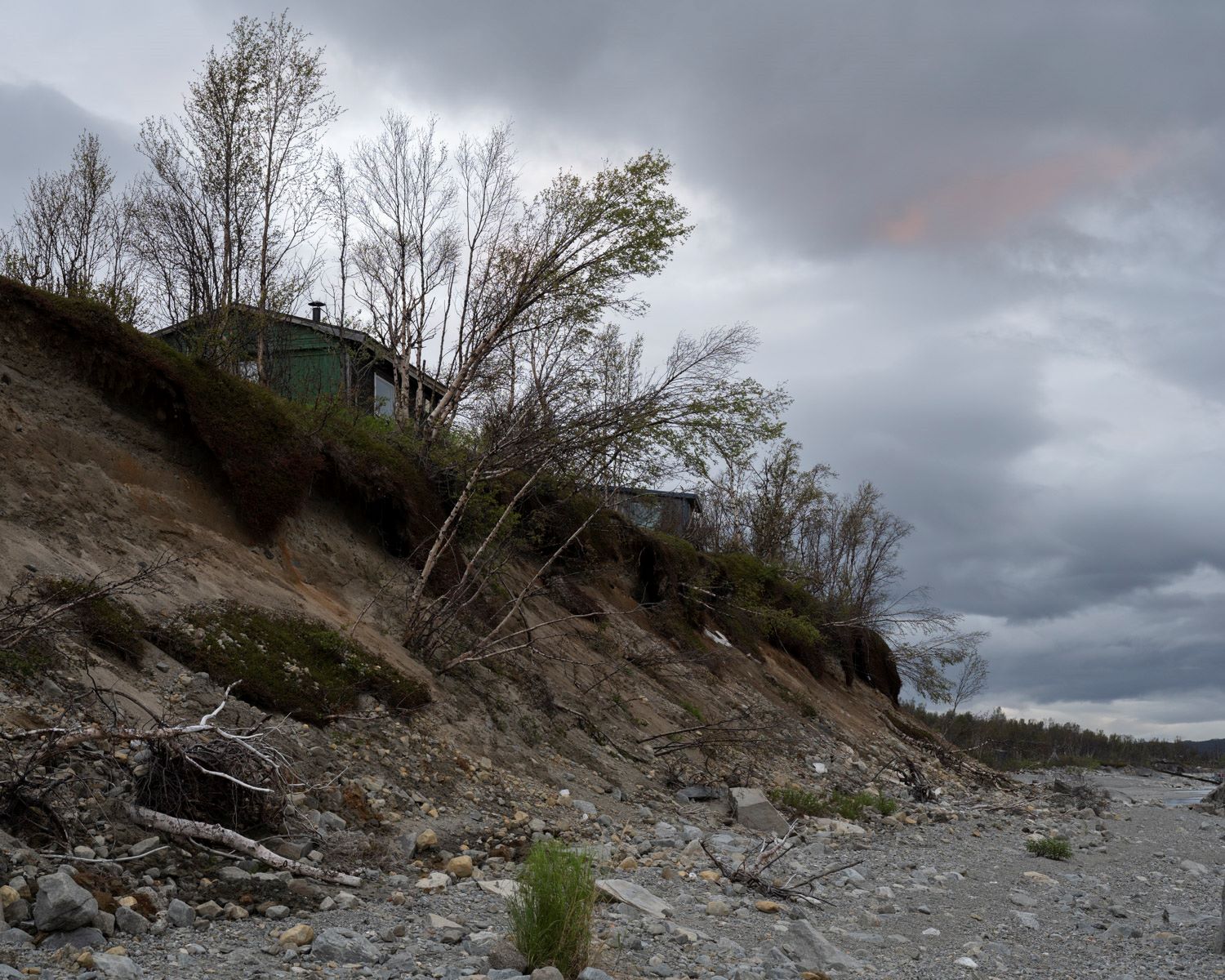 För tolv år sedan hade erosionen gått för långt och kåtan måste tas ned. En bar sandig cirkel i gräset strax intill branten går fortfarande att se. Ett litet tag till.