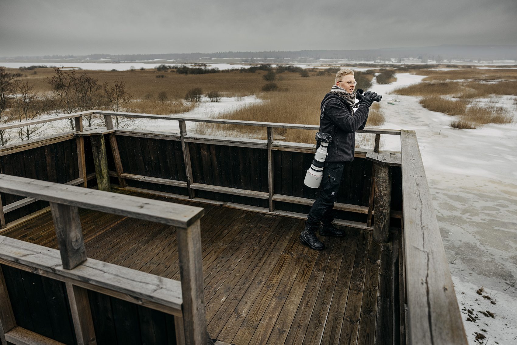 Tidig morgon i slutet av februari, snö i luften. Jonas Classon kör norrut från Örebro, ordentligt påpälsad för årets första besök vid sångsvanarnas sjö.
