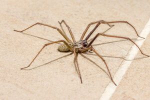 Det var en bokspinnarlarv, en luden gul fjärilslarv med svarta fläckar, och en av de arter som han numer har ett förberett signatursvar för i mejlen. Många hör av sig med frågor om just bokspinnare. Större husspindel och bålgeting är två andra av de arter folk frågar mest om.