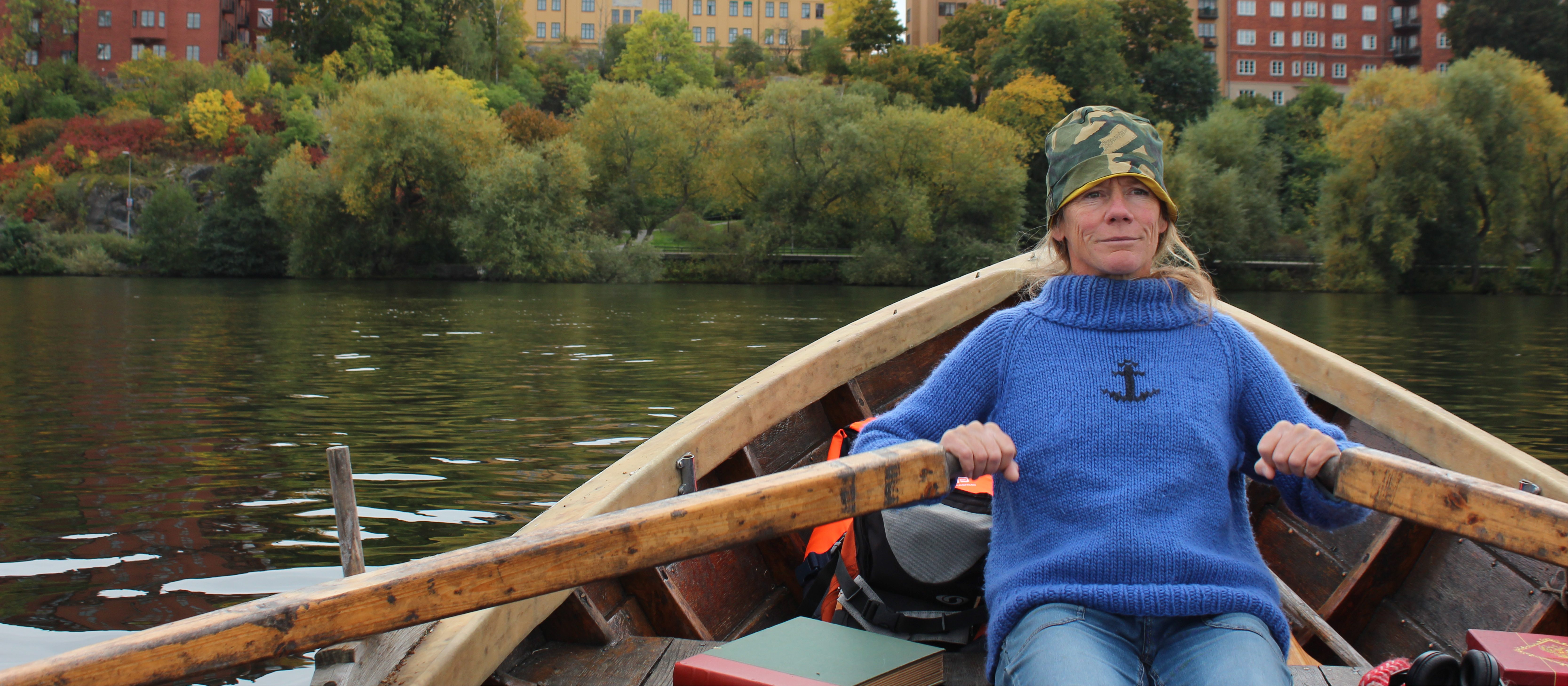 Dödskalleflaggan vajar i topp när roddarmadammen gör sig redo att lätta ankar. Med trygga årtag tar Toya Westberg oss ut på Riddarfjärden.