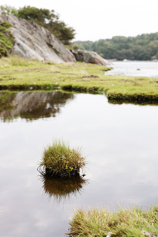 Nere på strandängen landar en flock med kanadagäss. Tillsammans med ett gäng skarvar på skäret utanför och en ensam häger och en duvhök som svischar förbi är det vad vi får se av fågellivet på ön. Vår och höst är saltängarna desto mer välbesökta, en viktig rastplats för vadare som storspov, kärrsnäppa och strand-