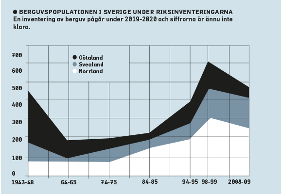 Det är inte första gången berguvarna minskar. Den första riksinventeringen gjordes 1943-48. Då var berguvarna hårt trängda av jakt och fridlystes 1950. Det räckte inte, under 1960-talet drabbades berguven liksom andra rovfåglar av miljögifter. I ett desperat försök att rädda arten började engagerade ornitologer över hela landet föda upp och plantera ut berguvar. Omkring 1980 började stammen öka och kring millennieskiftet var uvarna ungefär lika många som i uppskattningar från 1900-talets början. Berguvskämparna andades ut och uppfödningen kunde avslutas. Men för omkring tio år sedan började rapporter komma in igen, fler och fler bohyllor stod tomma. Landets dovaste hoande blev mer och mer sällsynt i vårvinternätterna.