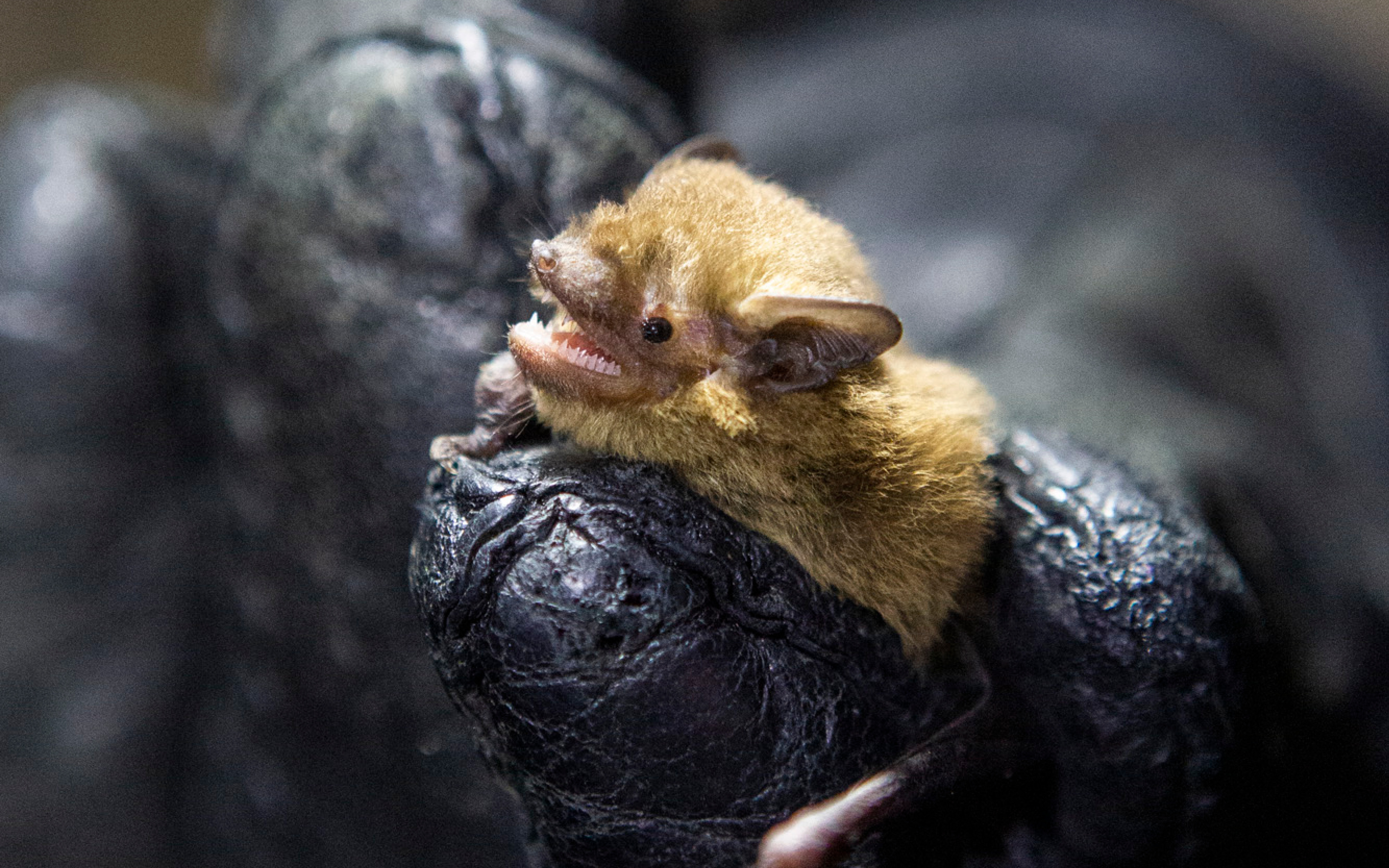 Det är knappast det intryck som dvärgpipistrellen vill förmedla. Den biter vilt i nätet med sylvassa tänder och skriker med rasande öppen mun.