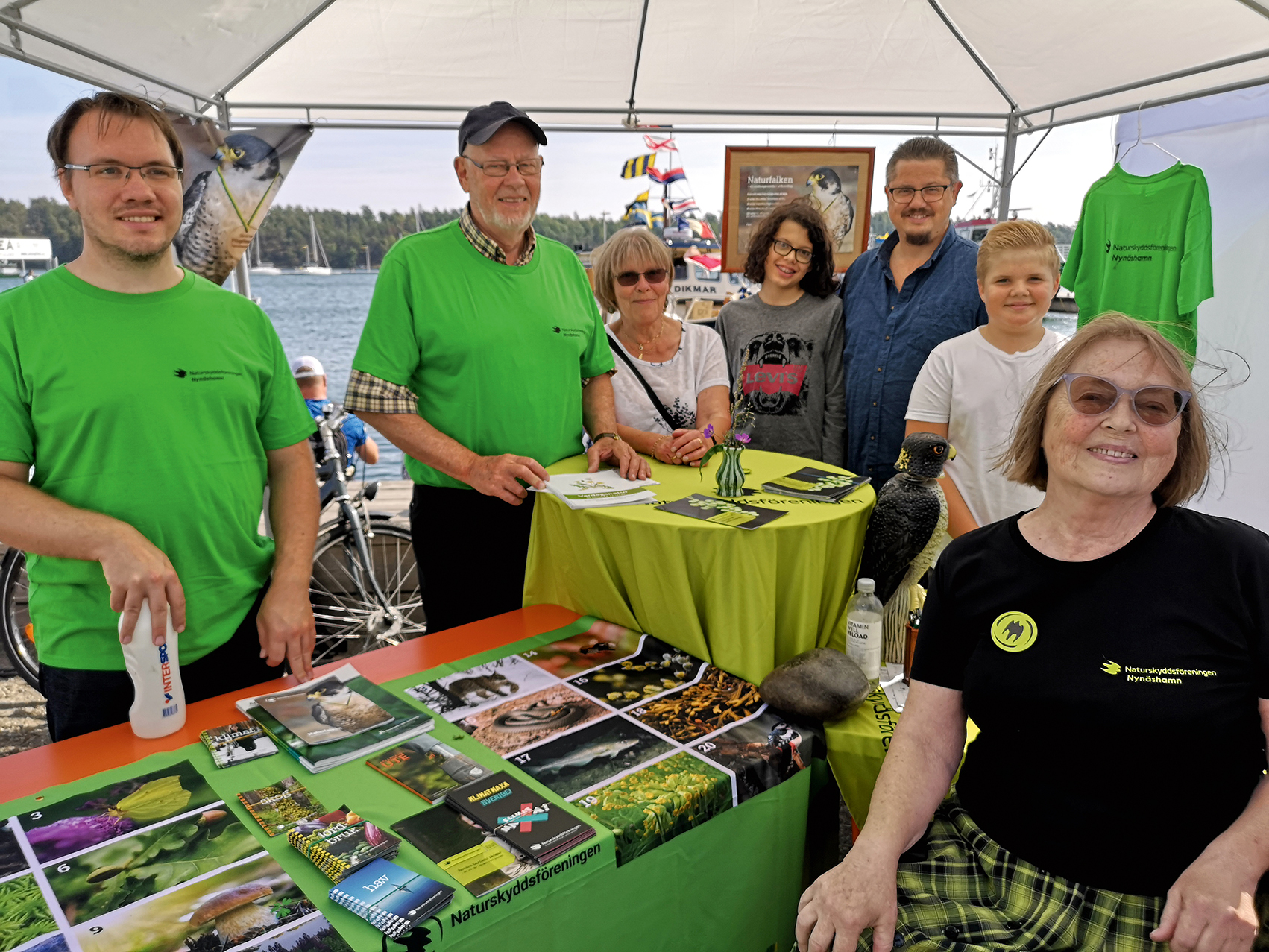 Nynäshamnskretsen pratade arter med besökarna på Skärgårdsmarknaden. Fr v. Henrik Ericsson, Bengt Holwaster, Barbro Runnqvist, Viggo Dannstedt, Tommy Dannstedt, Theodor Dannstedt och Eva Dannstedt Branting.