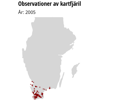 För att fånga upp hur arter påverkas av ett varmare klimat har redaktionen analyserat data över hur de mest nordliga observationerna har förflyttats. Analysen av närmare 1,5 miljoner observationer av fjärilar som rapporterats in till Artportalen sedan 2005 visar en dramatisk förändring för många arter. På bara tio år har de nordligaste observationerna av 40 arter flyttat mer än fem mil norrut i landet. Fem av dem har observerats minst 30 mil längre norrut än för tio år sedan.