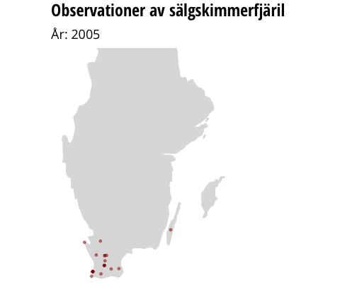 Men en art som har expanderat så snabbt i Sverige de senaste åren att analysen inte fångar upp den är sälgskimmerfjärilen. Den påträffades i Sverige ungefär samtidigt som kartfjärilen men har spridit sig norrut snabbare. Lars Pettersson kallar fjärilen den mest ”extrema” de senaste tio åren.