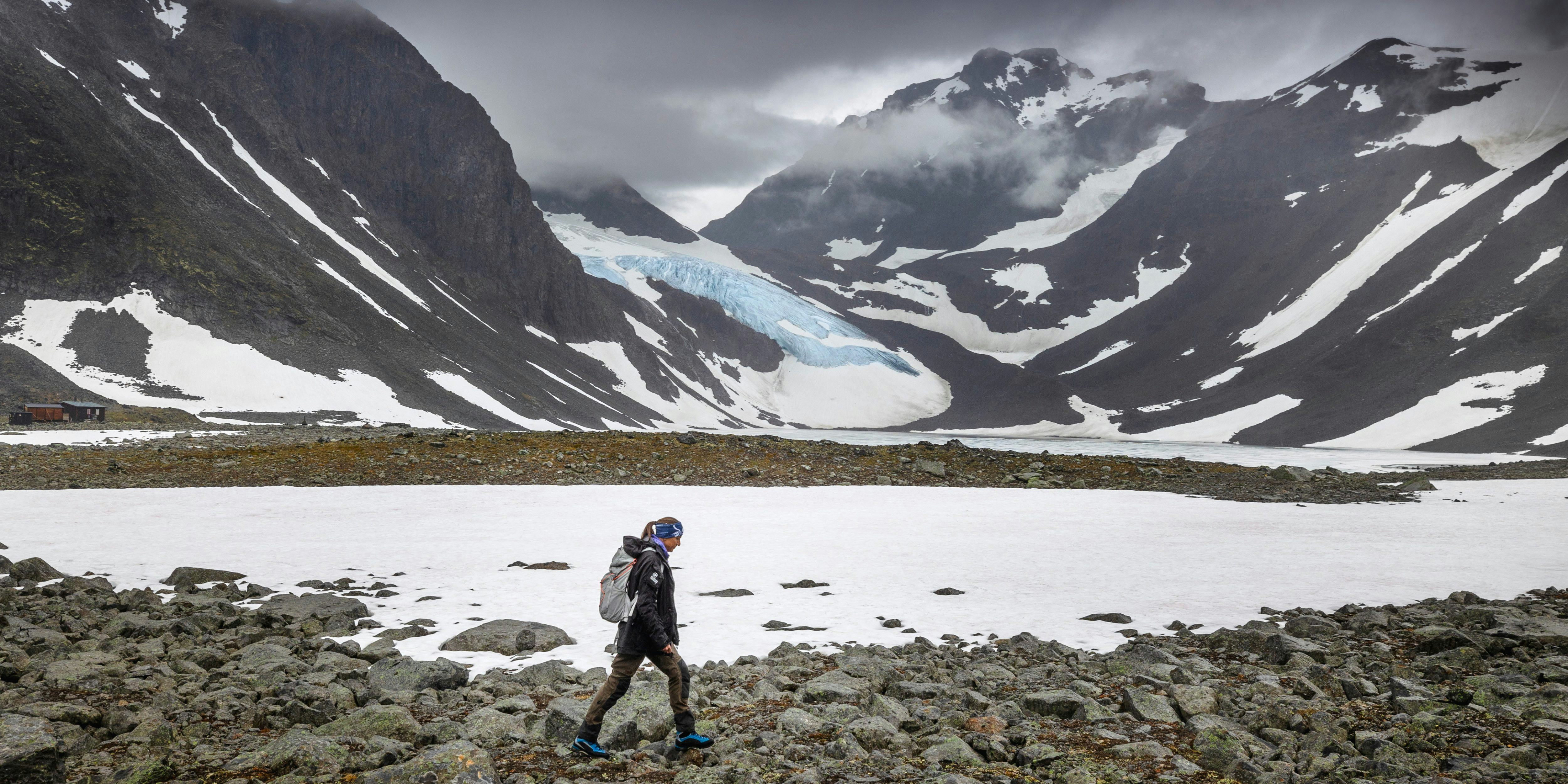 Nina Kirchner, ansvarig för glaciärforskningen i Tarfala, ser tydligt hur glaciärerna krymper. ”Det är den långsiktiga trenden, både här och globalt.”