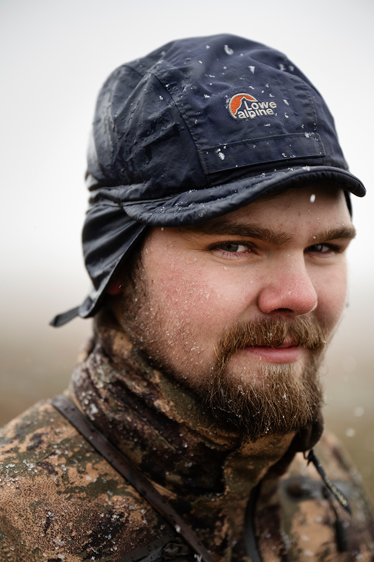När vi till sist är framme vid Mattias spaningsplats blir luften prickig. Det är som ett kornigt fotografi med dålig upplösning. Snökornen känns först lite vinterexotiskt härliga men snart avslöjar de sitt sanna jag och börjar smälta. Den här tiden är hela tiden på gränsen mellan ljuvt färgsprakande höst och kallsinnig vinter. Björnarnas deadline närmar sig − innan snön lägger sig måste de ligga i idet. Vi sitter en stund men snart syns fjällsidorna knappt alls. Det är bara att börja gå den långa vägen ner och tillbaka upp på Torrsmolet i skymningen.