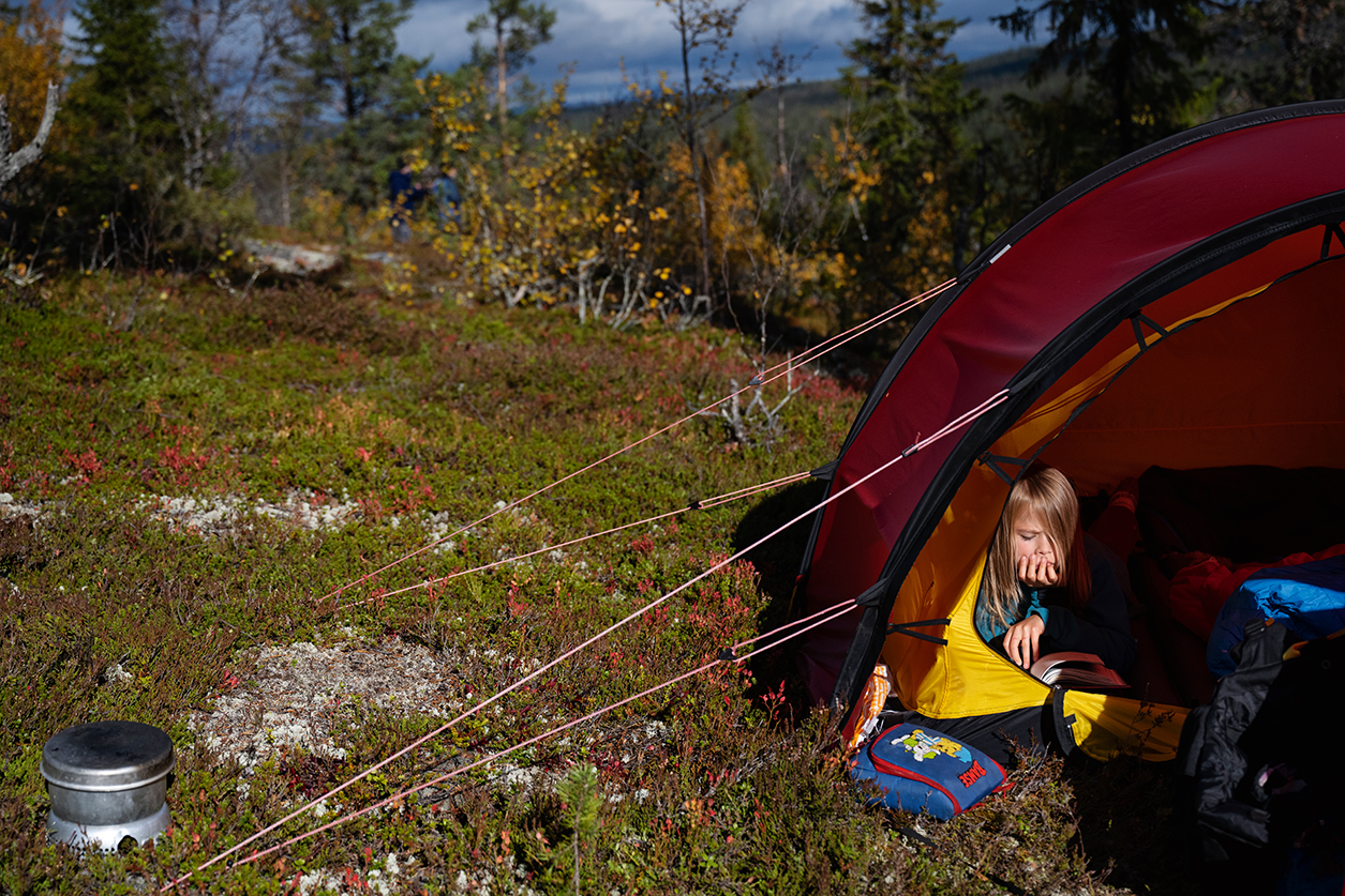 Efter tre dagars spaning återstår bara en morgon innan det är dags att vända hem. Vi är överens om att det har varit en fin tur och att järven var mycket mer än vi hade hoppats på. Men ändå blänger nallebjörnen Börne lite småsurt upp ur sovsäcken när det börjar ljusna. Bara att gå ut i morgonkylan och ställa sig vid kikarna igen. Vi hinner knappt torka imman från linserna så är den där, en distinkt lunkande skugga. Björn-alarm! Det är som att väcka en brandstation i full beredskap. Barnen som tidigare tagit timmar på sig att kravla upp ur sovsäckarna störtar ut i underställen som de sovit i.