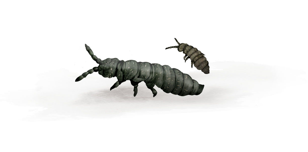 Det är lätt att känna medlidande med de små vinglösa myggliknande snösländorna som traskar eller hoppar omkring uppe på snön, till synes helt vilsna. Deras ärende på ytan är att sprida sig. Som larver lever de under snön och äter mossa, men som vuxna måste de vidga sina vyer för att hitta en partner och nya platser att lägga ägg.