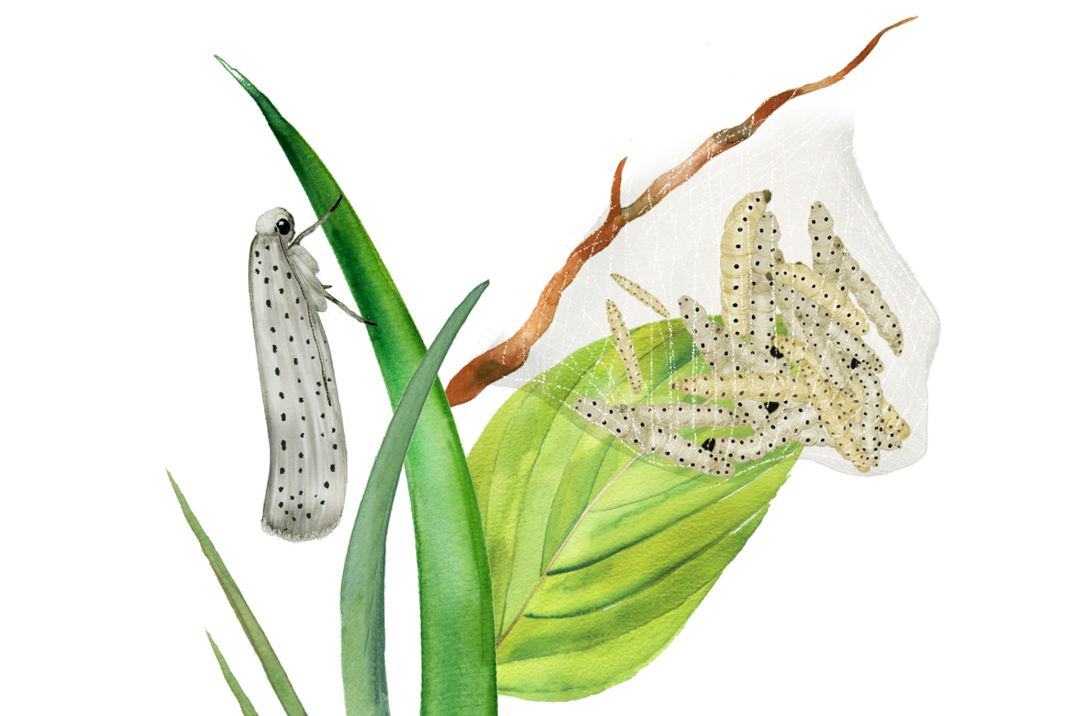 Vuxna fjärilar klarar sig på lite nektar eller ingenting alls medan larvernas fokus är att proppa sig fulla med mat. Larverna gör större avtryck på omgivningen – ett exempel är häggspinnmalen. Den vaknar när häggens blad slår ut och börjar spinna vita skyddsnät runt ett ”planerat ätområde”.