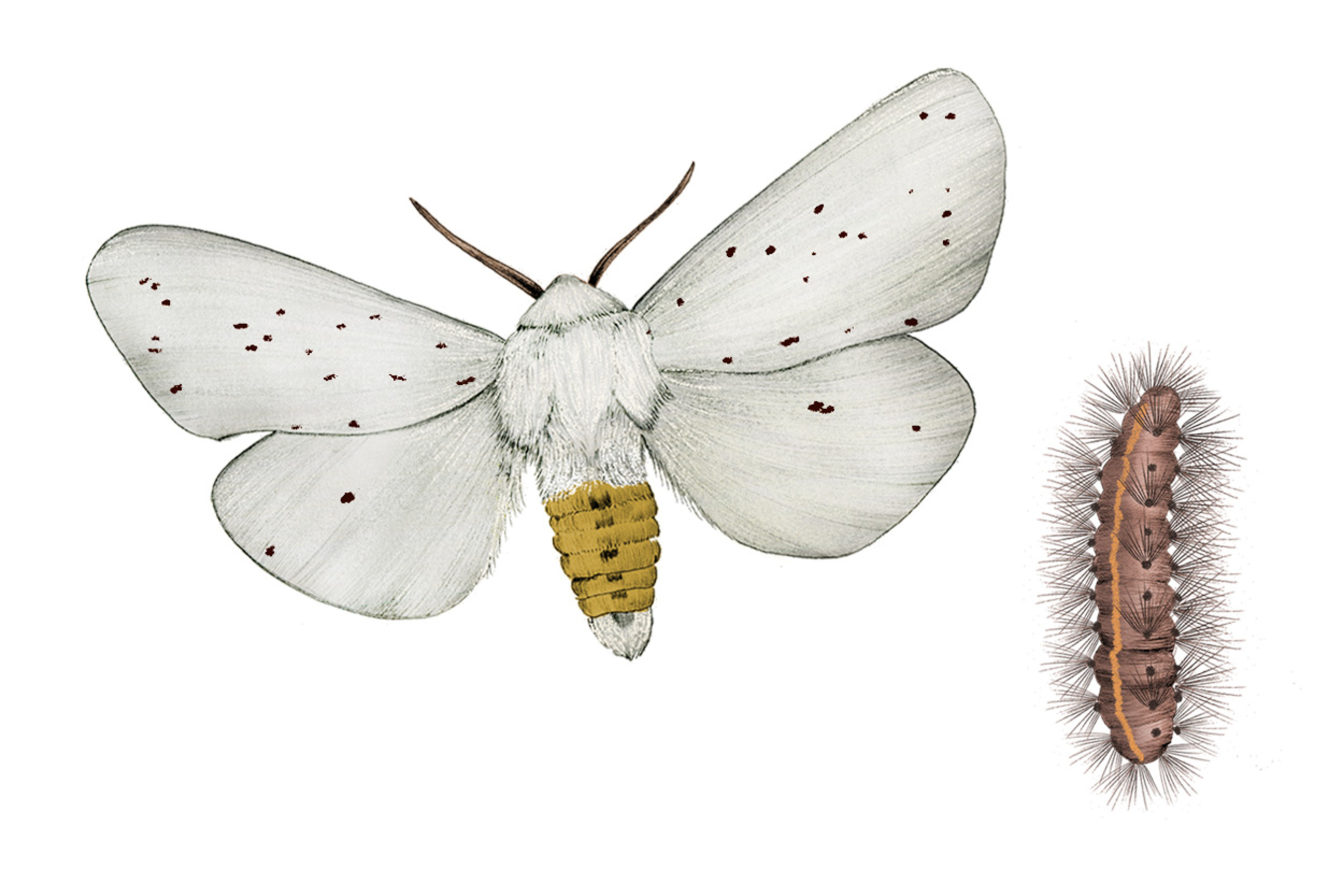 Den prickiga tigerspinnaren är en vanlig gäst vid fjärilslampor. Även dess håriga larver brukar synas i augusti-september när de ger sig ut för att hitta en bra förpuppningsplats. Vid den tiden kommer många olika fjärilslarver krypande över vägar och gräsmattor i samma ärende.