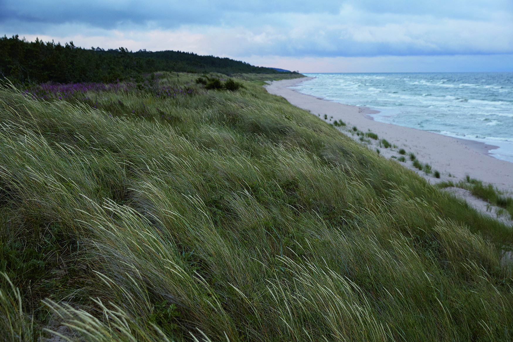 På kvällen går vi över stelnade jättevågor av sand norr om fyrbyn. Husen var nära att slukas av dynerna för hundra år sedan, men räddades genom massiv plantering av tallar och gräs.