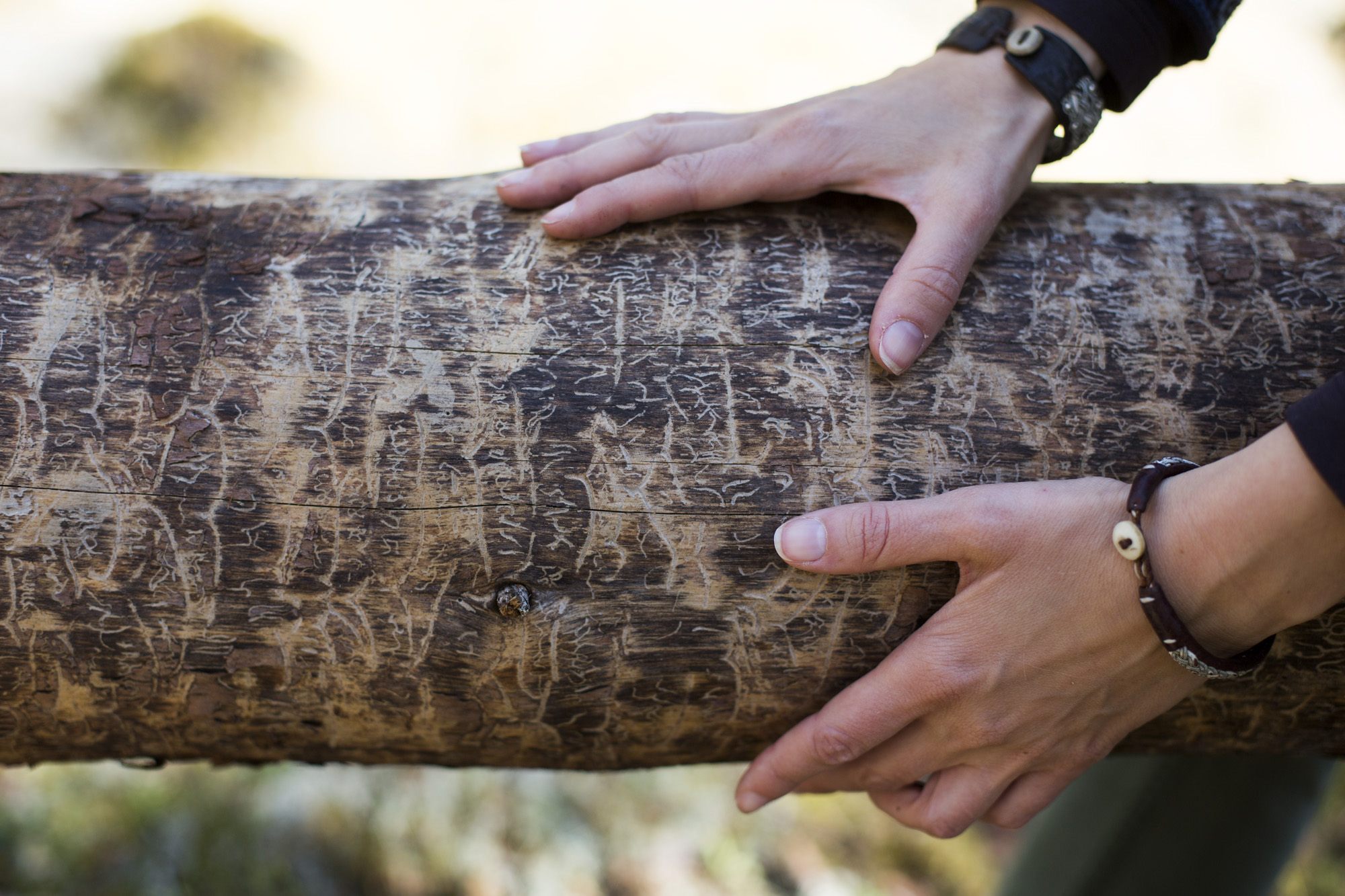 Larvgångar efter mindre märgborre.