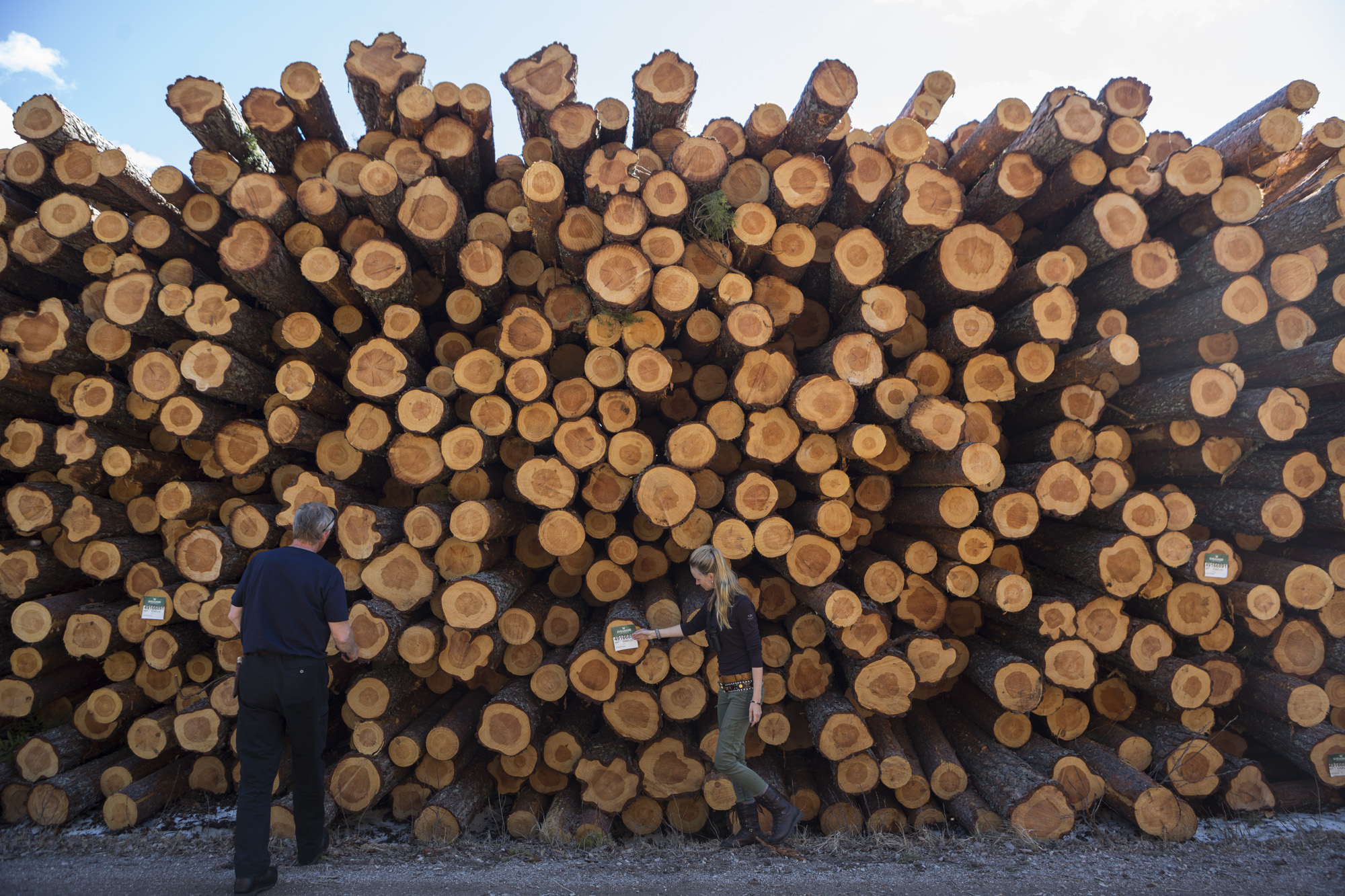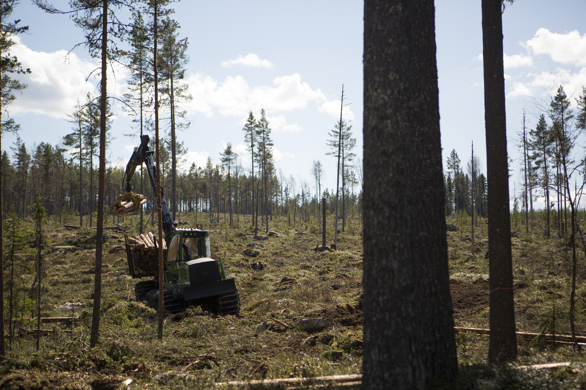 Medan vi vandrar omkring i skogen passerar timmerbil efter timmerbil, fullastad med virke från andra delar av Ore skogsrike.