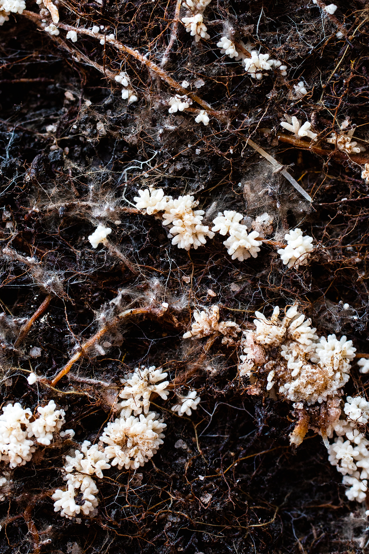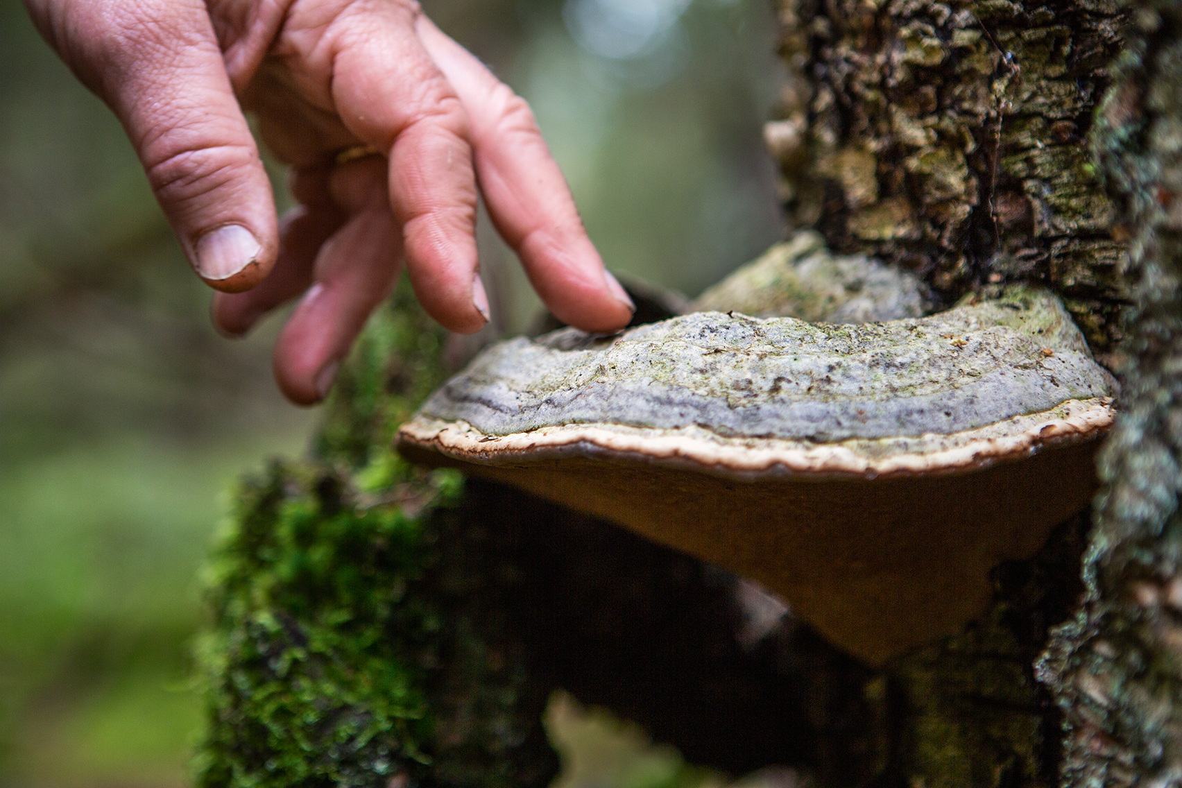 Här syns samarbetet mellan svamp och träd som kallas mykorrhiza.