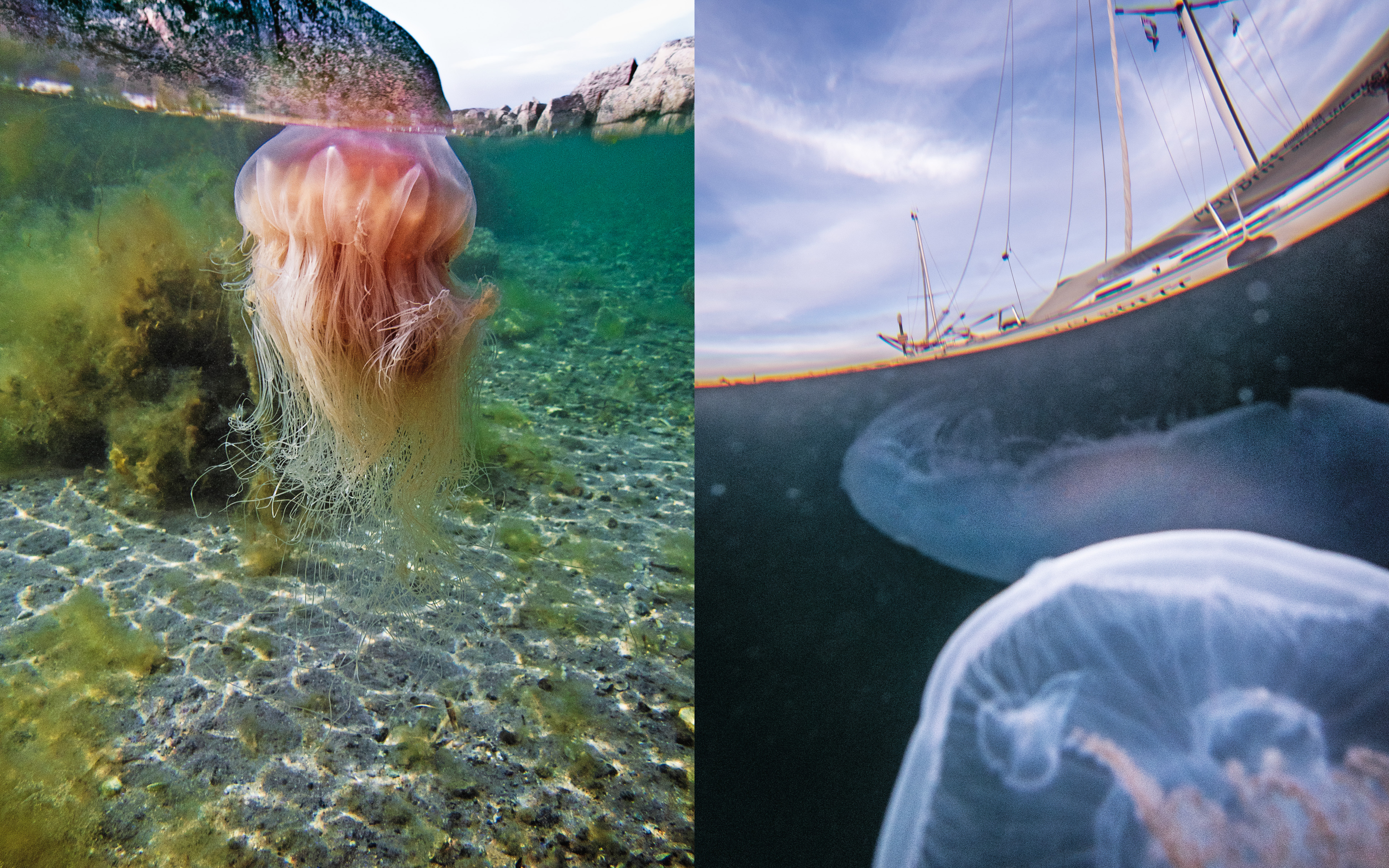 Under ytan rör sig och växer arter vi sällan ser. Som maneter. De är otroligt vackra och gåtfulla. Pådrivna av strömmar och vattenrörelser, av ljus och havstemperatur, dyker de plötsligt upp i flock.