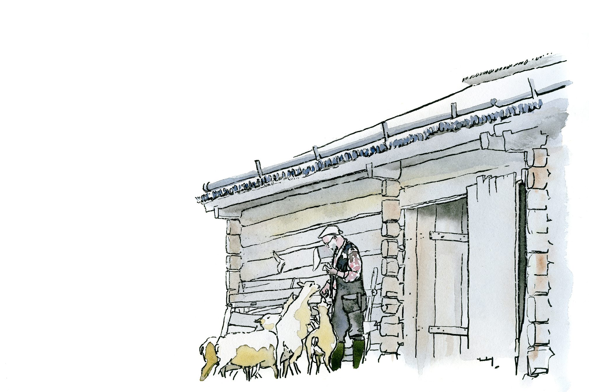 Han heter Crister Lövgren och tidigt nästa morgon, när dimmorna fortfarande smyger i skogsbrynen, släpper han som vanligt ut Fjällnäsfåren ur fähuset. Sedan står han där och delar ut överblivet tunnbröd från Ica i Glommersträsk till dem, som oblater till en skock ivriga nattvardsgäster.